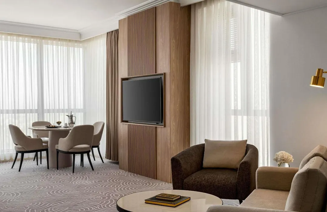Movenpick Hotel & Residences Hajar Tower Makkah dispose de 1349 chambres comprenant un balcon et une terrasse et un minibar et une cafetière/théière. Les détails intéressants comprennent des fenêtres insonorisées, ainsi qu'un bureau.
